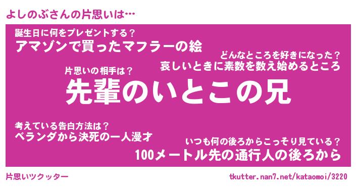 | 胡散臭い通販商品みたいなあだ名 | 『モテモテ間違いなし水晶球…その名も「よしのぶ」』 |