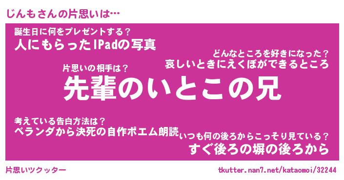 | 胡散臭い通販商品みたいなあだ名 | 『モテモテ間違いなし霊験あらたかなお札…その名も「じんも」』 |