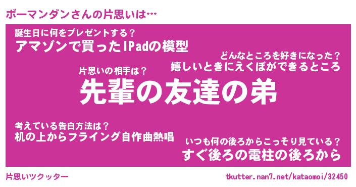 | 男性向けラノベタイトル風あだ名 | 『ボーマンダンの憂鬱』 |