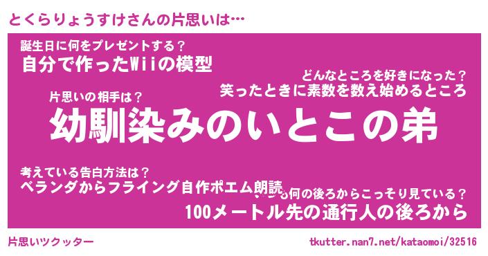 | 男性向けラノベタイトル風あだ名 | 『とくらりょうすけの憂鬱』 |