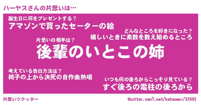 | 意味不明あだ名 | 『ペロリンハーヤス』『永久保存ハーヤス』 |