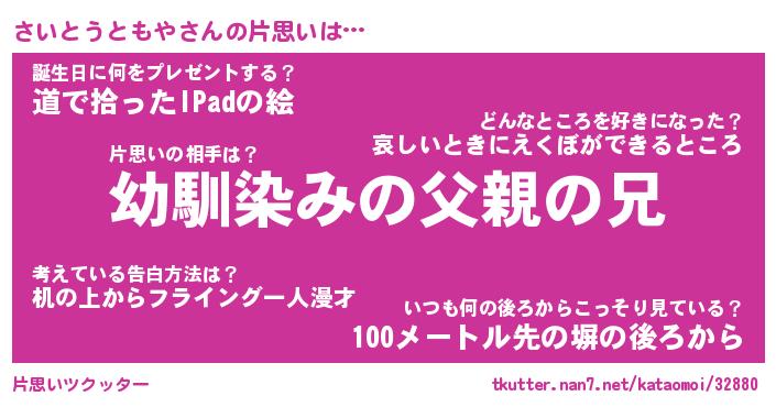 | 胡散臭い通販商品みたいなあだ名 | 『必ず成功する水晶球…その名も「さいとうともや」』 |