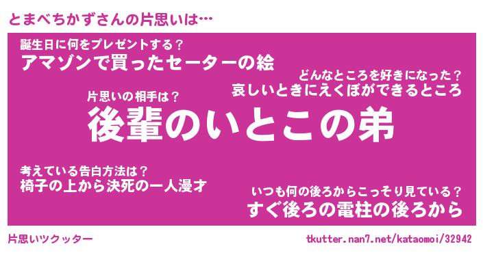| ヘコむあだ名 | 『とまにゅー』『なまこ酢』『とまを』 |