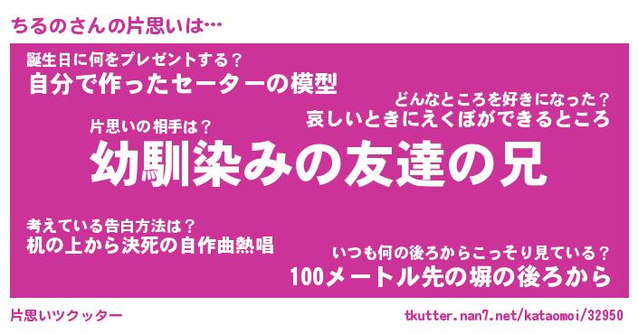 | ヘコむあだ名 | 『ちるっふぃ~』『つくし』 |