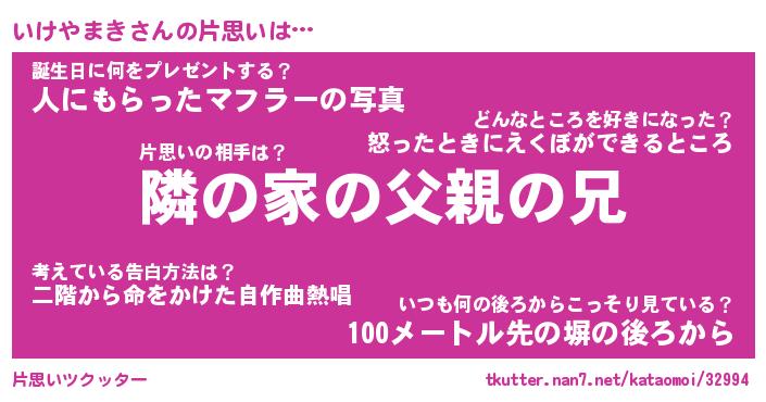 | ヘコむあだ名 | 『いけにゅー』『なまこ酢』『いけお』 |