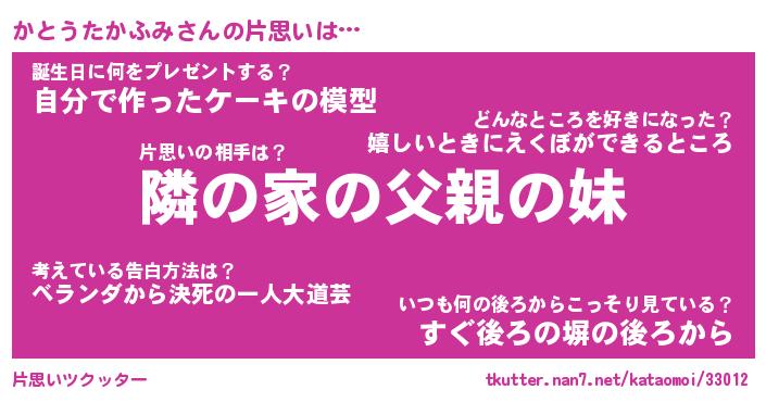 | ヘコむあだ名 | 『かとにゅー』『つくし』 |