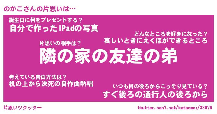 | ヘコむあだ名 | 『のかっふぃ~』『つくし』 |
