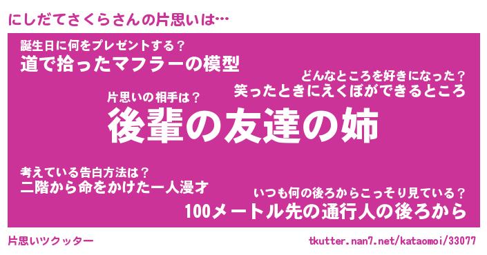 | 胡散臭い通販商品みたいなあだ名 | 『モテモテ間違いなし霊験あらたかなお札…その名も「にしだてさくら」』 |