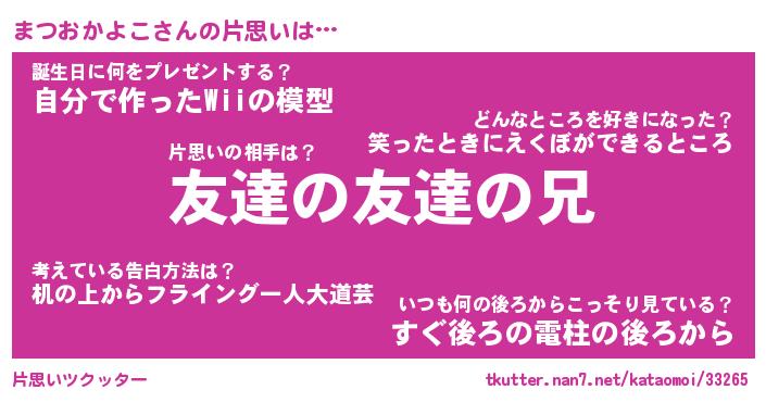 | 肩書あだ名 | 『まつおかよこ御曹司』 |