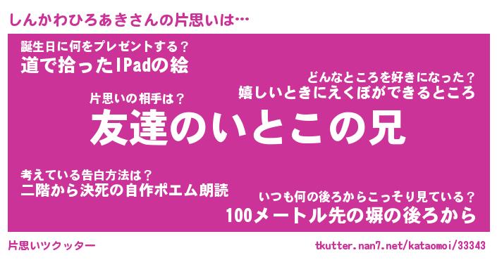 | 女子向けラノベタイトル風あだ名 | 『誰かこのしんかわひろあきを説明してください! ~契約から始まるウェディング~』 |