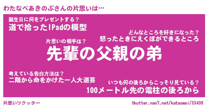 | ヘコむあだ名 | 『わたにゅー』『豆乳』『わたお』 |