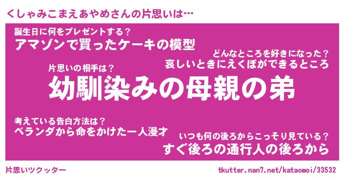 | 欧米人風あだ名 | 『マイケルくしゃみこまえあやめ』 |