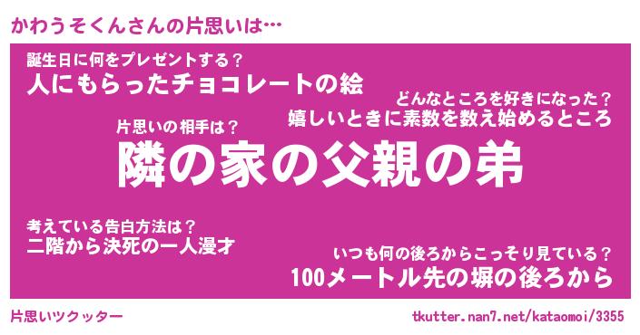 | 胡散臭い通販商品みたいなあだ名 | 『モテモテ間違いなし水晶球…その名も「かわうそくん」』 |