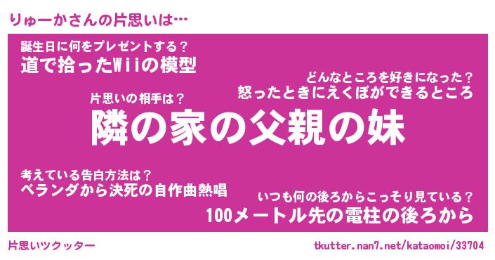 | 胡散臭い通販商品みたいなあだ名 | 『必ず成功するブレスレット…その名も「りゅーか」』 |