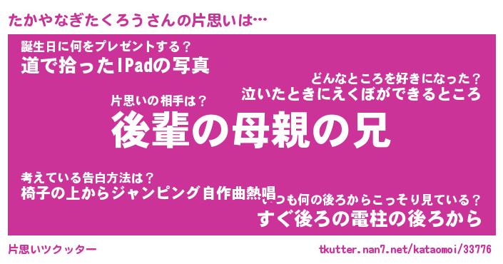| 胡散臭い通販商品みたいなあだ名 | 『モテモテ間違いなしブレスレット…その名も「たかやなぎたくろう」』 |