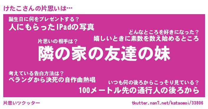 | 男性向けラノベタイトル風あだ名 | 『けたこの憂鬱』 |