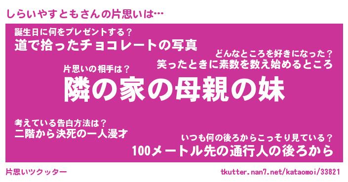 | 胡散臭い通販商品みたいなあだ名 | 『必ず成功するブレスレット…その名も「しらいやすとも」』 |