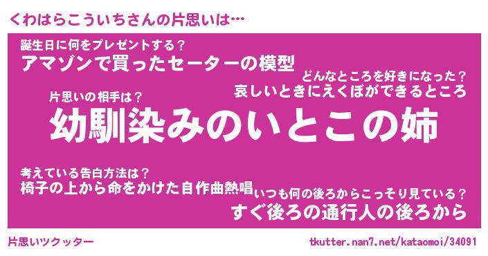 | 男性向けラノベタイトル風あだ名 | 『くわはらこういちの憂鬱』 |