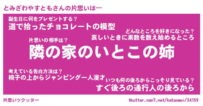 | 男性向けラノベタイトル風あだ名 | 『とみざわやすともの憂鬱』 |
