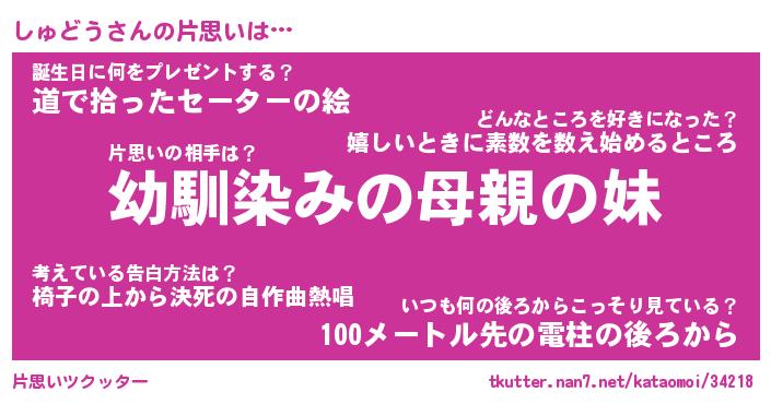 | 男性向けラノベタイトル風あだ名 | 『しゅどうの憂鬱』 |