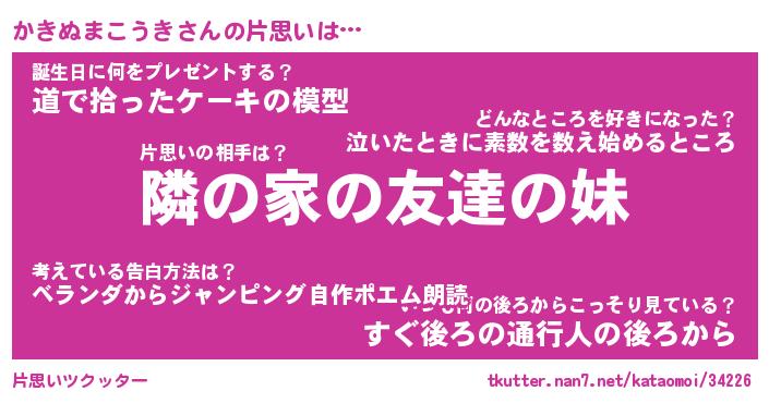 | 男性向けラノベタイトル風あだ名 | 『かきぬまこうきの憂鬱』 |