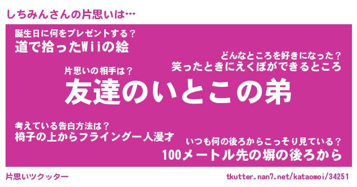 | 意味不明あだ名 | 『ペロリンしちみん』『永久保存しちみん』 |