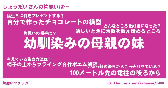 | 胡散臭い通販商品みたいなあだ名 | 『必ず成功するブレスレット…その名も「しょうだい」』 |