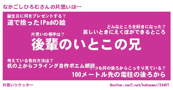 | ツイッター | なかごしひろむさんのツイッターID『namakemono_kun』 |