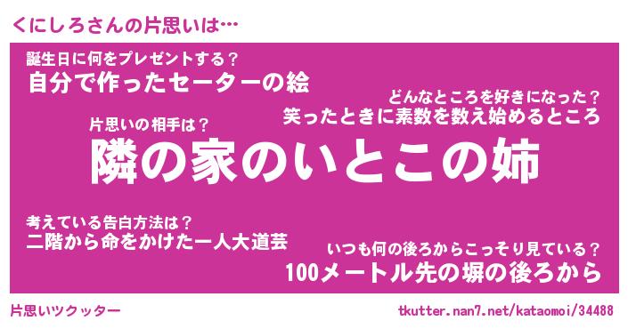 | 男性向けラノベタイトル風あだ名 | 『くにしろの憂鬱』 |