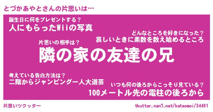 | 胡散臭い通販商品みたいなあだ名 | 『モテモテ間違いなし霊験あらたかなお札…その名も「とづかあやと」』 |