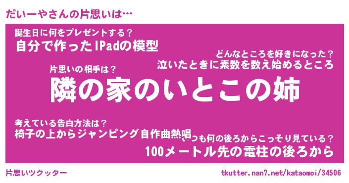 | ヘコむあだ名 | 『だいにゅー』『つくし』『だいを』 |