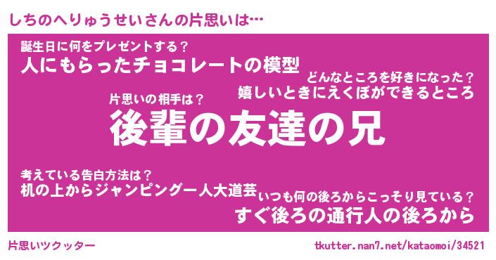 | 胡散臭い通販商品みたいなあだ名 | 『モテモテ間違いなし霊験あらたかなお札…その名も「しちのへりゅうせい」』 |