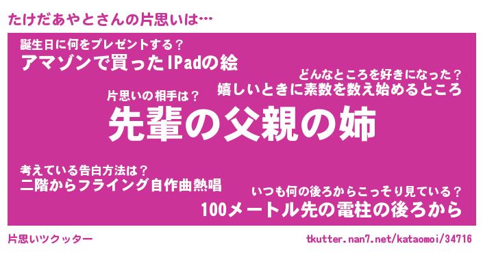 | 男性向けラノベタイトル風あだ名 | 『たけだあやとの憂鬱』 |