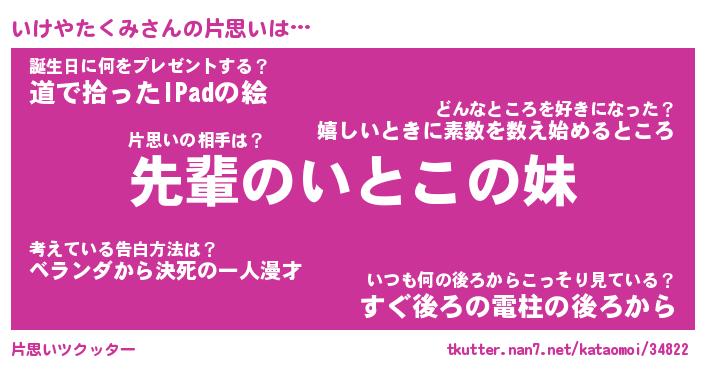 | ヘコむあだ名 | 『いけもー』『豆乳』『いけお』 |