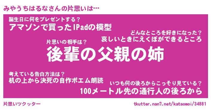 | 胡散臭い通販商品みたいなあだ名 | 『モテモテ間違いなし水晶球…その名も「みやうちはるな」』 |