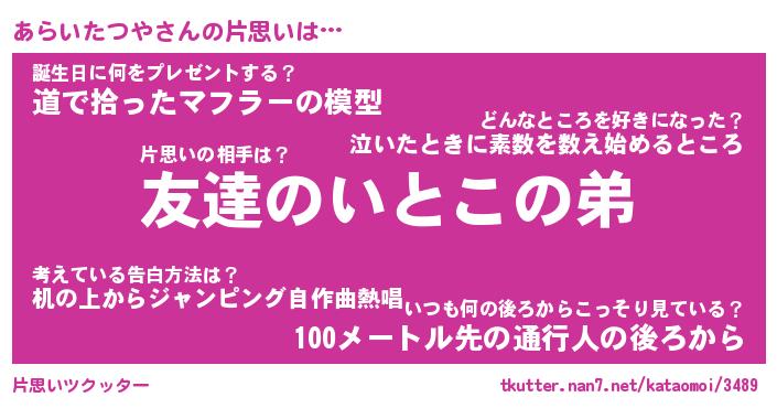 | 伝説のあだ名 | 『封印されしスナイパーあらいたつや』 |