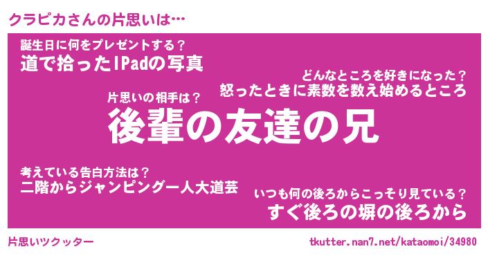 | ヘコむあだ名 | 『クラっふぃ~』『豆乳』『クラっぺ』 |