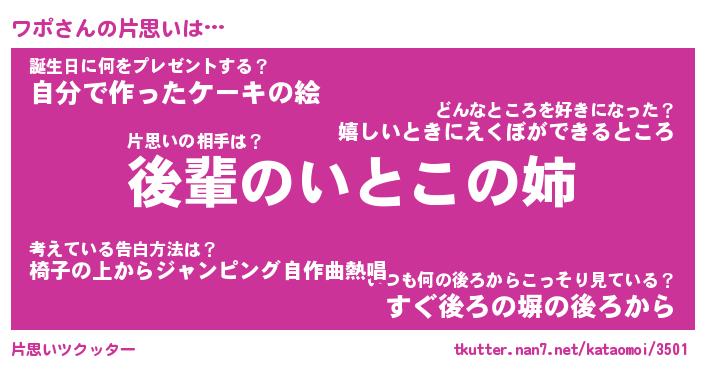 | ヘコむあだ名 | 『ワポもー』『なまこ酢』『ワポ(笑)』 |