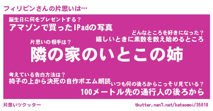 | 女子向けラノベタイトル風あだ名 | 『(仮)フィリピンのやんごとなき事情』 |
