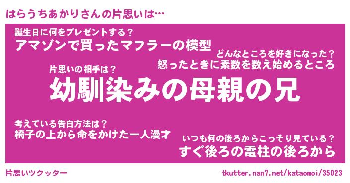 | 男性向けラノベタイトル風あだ名 | 『はらうちあかりの憂鬱』 |