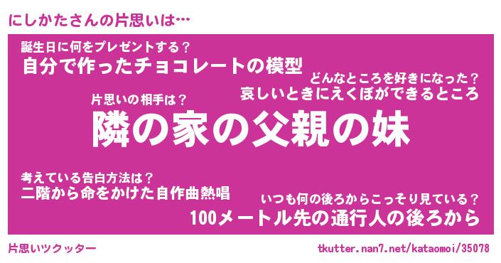 | 男性向けラノベタイトル風あだ名 | 『にしかたの憂鬱』 |