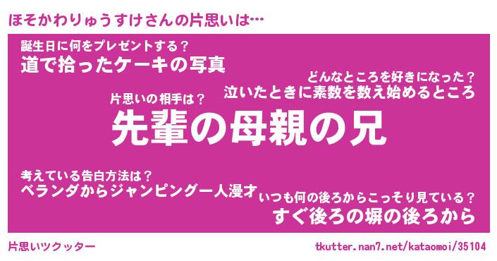 | 胡散臭い通販商品みたいなあだ名 | 『モテモテ間違いなしブレスレット…その名も「ほそかわりゅうすけ」』 |