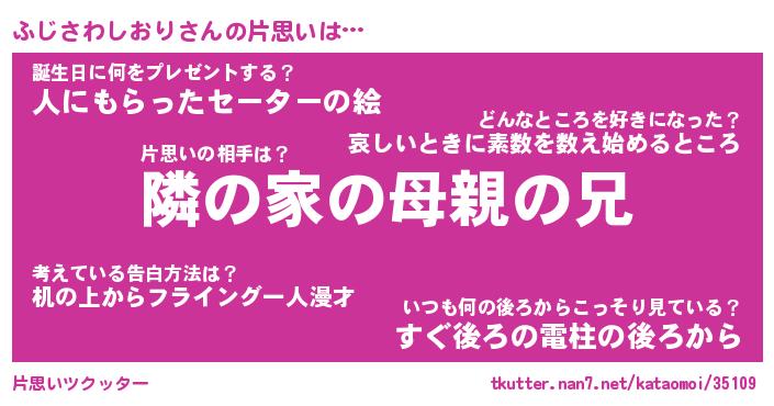 | 男性向けラノベタイトル風あだ名 | 『ふじさわしおりの憂鬱』 |