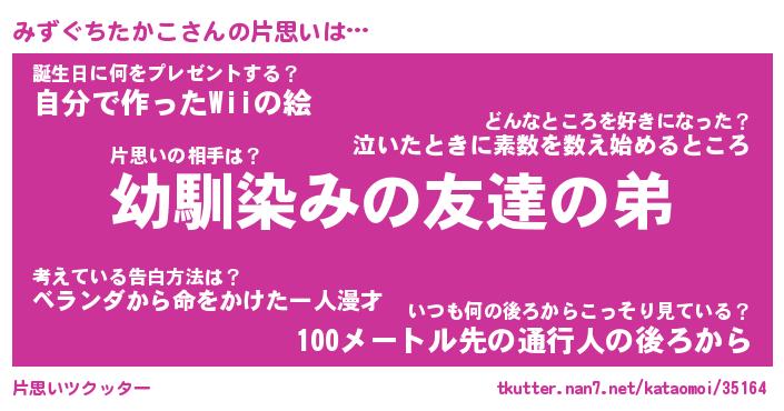 | ヘコむあだ名 | 『みずっふぃ~』『つくし』 |