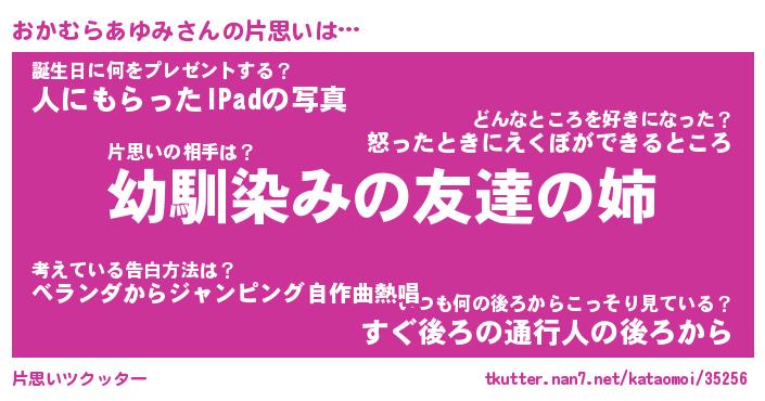 | 女子向けラノベタイトル風あだ名 | 『(仮)おかむらあゆみのやんごとなき事情』 |