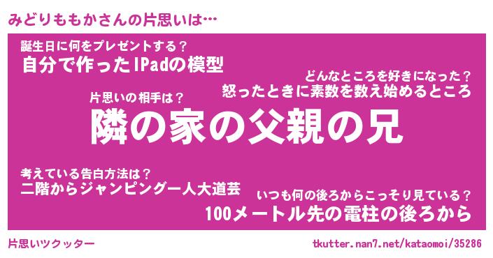 | 男性向けラノベタイトル風あだ名 | 『みどりももかの憂鬱』 |
