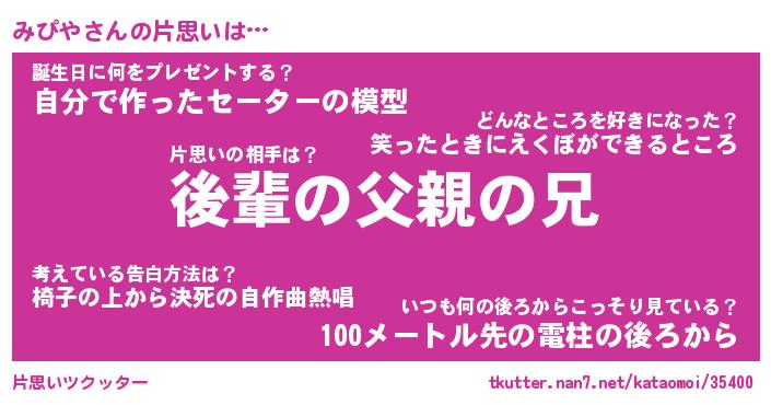 | ヘコむあだ名 | 『みぴふぇ~』『牛乳』『みぴお』 |