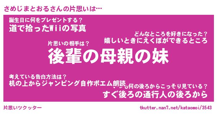 | ヘコむあだ名 | 『さめにー』『豆乳』『さめっちょ』 |