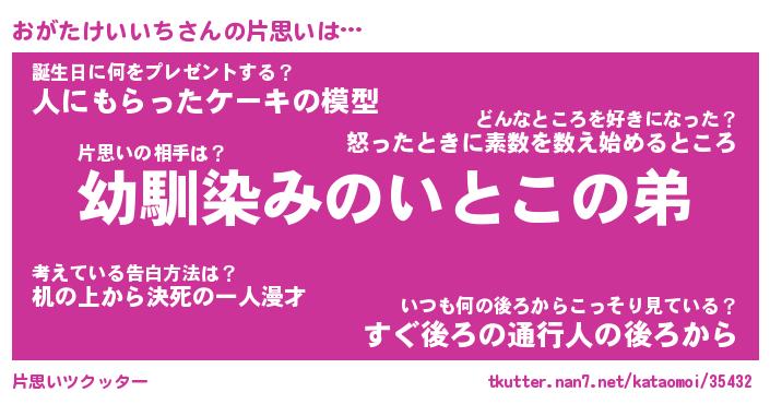 | 男性向けラノベタイトル風あだ名 | 『おがたけいいちの憂鬱』 |
