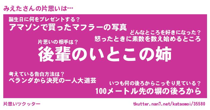 | ヘコむあだ名 | 『みえもー』『酢こんぶ』『みえお』 |